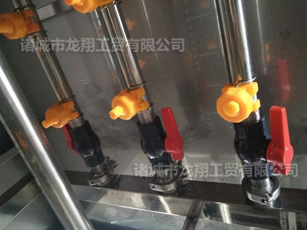 清洗分為三段一段為熱堿水,二段為熱清水,三段為自來水。三段噴淋水除第三段自來水外都有獨立循環(huán)過濾水箱,三段自來水作為補充水回收至二段水箱加熱使用過后部分污水被自動排出。二水箱內(nèi)設(shè)有蒸汽加熱管,溫度從常溫至100°C自由設(shè)定、自動恒溫